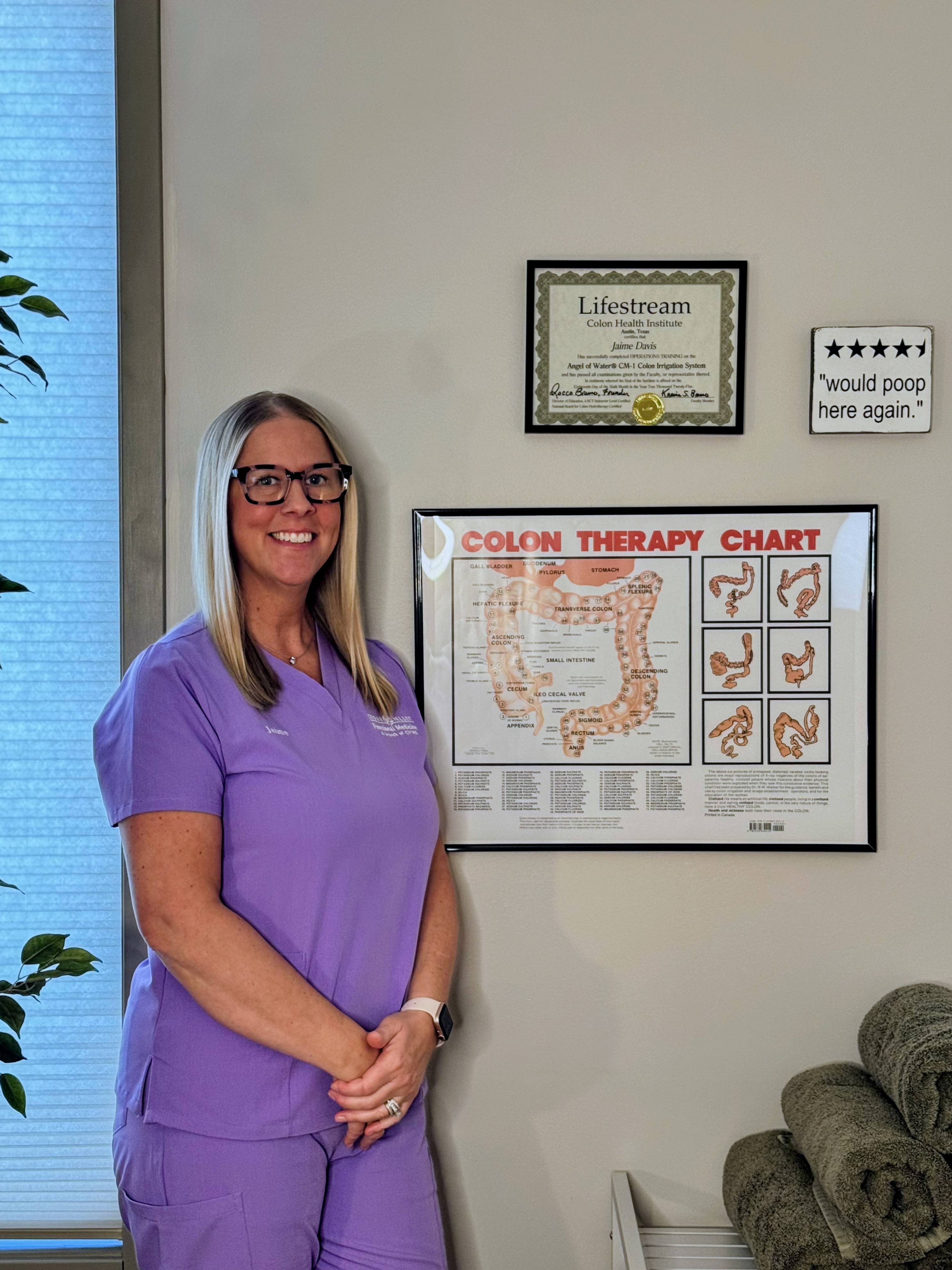 Hi, I’m Jaime Davis, the Clinic Manager at Cedar Valley Functional Medicine and a certified Colon Hydrotherapy expert, trained by the International Association of Colon Hydrotherapy (I-ACT). My passion is helping people improve their digestive health and overall well-being through gentle, effective colon hydrotherapy. I’ve had the privilege of supporting several individuals on their healing journeys, and it’s incredibly rewarding to see the positive changes they experience. I take great care to ensure each session is comfortable, professional, and tailored to each person’s needs.